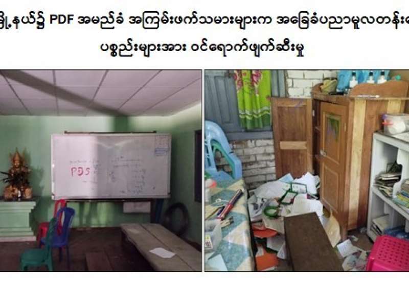နိုင်ငံတော်အတွင်း ရပ်ရွာအေးချမ်းသာယာရေးနှင့် တရားဥပဒေစိုးမိုးမှုကို ပျက်ပြားစေရန်ရည်ရွယ်ချက်ဖြင့် PDF အမည်ခံအကြမ်းဖက်သမားများက အပစ်မဲ့ပြည်သူများအား အကြမ်းဖက်သတ်ဖြတ်ခြင်းနှင့် အများပြည်သူပိုင်နေရာများကို ဖောက်ခွဲဖျက်ဆီးခြင်းများကို လုပ်ဆောင်လျက်ရှိသည်။