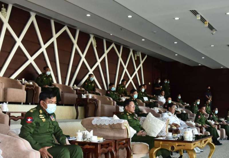 ၂ဝ၂၂ ခုနှစ်၊ တပ်မတော် (ကြည်း၊ ရေ၊ လေ) အားကစားပြိုင်ပွဲ၊ တပ်မတော်ကာကွယ်ရေးဦးစီးချုပ်ဖလား(ခ)အဆင့် ဘောလုံးပြိုင်ပွဲဗိုလ်လုပွဲ ပွဲစဉ်အဖြစ် အရှေ့မြောက်တိုင်းစစ်ဌာနချုပ် ကိုယ်စားပြုဘောလုံးအသင်းနှင့် အရှေ့တောင်တိုင်းစစ်ဌာနချူပ်ကိုယ်စားပြု ဘောလုံးအသင်းတို့သည် ယနေ့ညနေပိုင်းတွင် ဇေယျာသီရိတပ်မတော်အားကစားကွင်း၌ ယှဉ်ပြိုင်ကစားကြရာ နိုင်ငံတော်စီမံအုပ်ချုပ်ရေးကောင်စီဥက္ကဋ္ဌ တပ်မတော်ကာကွယ်ရေးဦးစီးချုပ် ဗိုလ်ချုပ်မှူးကြီးမင်းအောင်လှိုင် တက်ရောက်ကြည့်ရှုအားပေးသည်။