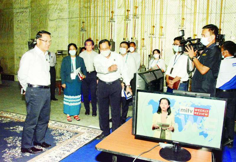 ပြန်ကြားရေးဝန်ကြီးဌာန ပြည်ထောင်စုဝန်ကြီး ဦးမောင်မောင်အုန်းသည် ယနေ့မွန်းလွဲပိုင်းတွင် ရန်ကုန်မြို့ရှိ မြန်မာ့အသံနှင့်ရုပ်မြင်သံကြားသို့ရောက်ရှိပြီး MITV News Studio ပြန်လည်တည်ဆောက်မှု၊ ရုပ်သံ Tower များ လုပ်ငန်းဆောင်ရွက်နေမှုနှင့် ကြံ့ခိုင်မှုအခြေအနေများကို ကြည့်ရှုစစ်ဆေးသည်။