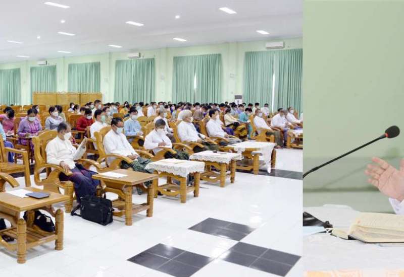 ပြည်ထောင်စုရာထူးဝန်အဖွဲ့ ကွပ်ကဲမှုအောက်ရှိ နိုင်ငံ့ဝန်ထမ်းတက္ကသိုလ်များ၏ တက္ကသိုလ်အကြံပေးအဖွဲ့နှင့် တက္ကသိုလ်ပညာရပ်အဖွဲ့များ လေ့ကျင့်သင်ကြားရေးဆိုင်ရာ ညှိနှိုင်းအစည်းအဝေးကို ယနေ့မွန်းလွဲပိုင်းက နေပြည်တော်ရှိ ပြည်ထောင်စု ရာထူးဝန်အဖွဲ့ရုံး၌ ကျင်းပသည်။