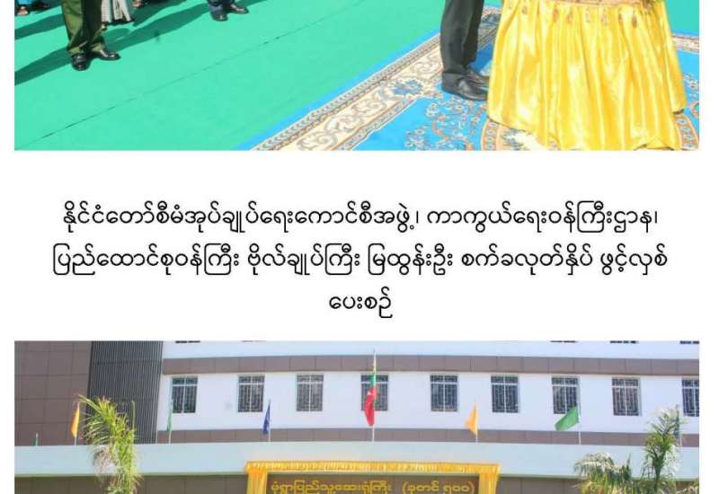 စစ်ကိုင်းတိုင်းဒေသကြီး၊ မုံရွာမြို့ ခုတင်(၅၀၀)ဆံ့ ပြည်သူ့ဆေးရုံကြီး တိုးချဲ့(၅)ထပ်ဆောင်သစ်ဖွင့်ပွဲ အခမ်းအနားကို ယနေ့နံနက်ပိုင်းတွင် အဆိုပါဆေးရုံ၌ ပြုလုပ်ရာ နိုင်ငံတော်စီမံအုပ်ချုပ်ရေး ကောင်စီအဖွဲ့ဝင်၊ ကာကွယ်ရေးဝန်ကြီးဌာန ပြည်ထောင်စုဝန်ကြီး ဗိုလ်ချုပ်ကြီးမြထွန်းဦး၊ စစ်ကိုင်းတိုင်းဒေသကြီး ဝန်ကြီးချုပ် ဦးမြတ်ကျော်၊ အနောက်မြောက်တိုင်းစစ်ဌာနချုပ် တိုင်းမှူးဗိုလ်မှူးချုပ် သန်းထိုက်နှင့် တာဝန်ရှိသူများ တက်ရောက်ကြသည်။
