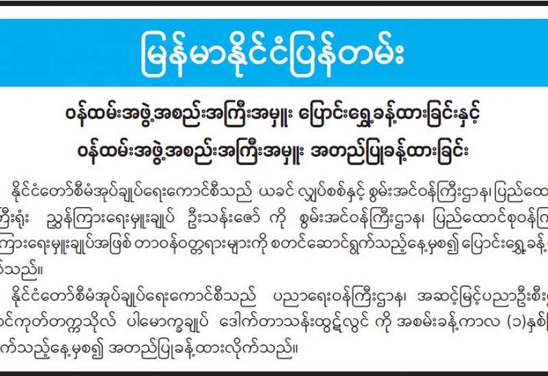 ကျန်းမာရေးဝန်ကြီးဌာနအနေဖြင့် နိုင်ငံအတွင်း ကူးစက်ဖြစ်ပွားနေသော COVID-19 ရောဂါ ကာကွယ်၊ ကုသ၊ ထိန်းချုပ်ရေးလုပ်ငန်းများကို အရှိန်အဟုန်မပြတ် ဆောင်ရွက်လျက်ရှိရာ ရောဂါ ထိန်းချုပ်ရေးလုပ်ငန်းများ အောင်မြင်နိုင်ရေးအတွက် ပြည်သူလူထုအနေဖြင့် ကျန်းမာရေးဝန်ကြီးဌာနမှ ထုတ်ပြန်ထားသော COVID-19 ရောဂါကာကွယ်ထိန်းချုပ်ရေးဆိုင်ရာ စည်းကမ်းများကို စနစ်တကျ လိုက်နာဆောင်ရွက်ရန်လိုအပ်ပြီး COVID-19 ကာကွယ်ဆေးထိုးနှံမှုခံယူခြင်းအား အထူးဂရုပြု ပူးပေါင်းဆောင်ရွက်ကြရန် လိုအပ်ပါသည်။