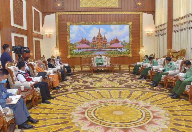 နိုင်ငံတော်စီမံအုပ်ချုပ်ရေးကောင်စီဥက္ကဋ္ဌ တပ်မတော်ကာကွယ်ရေးဦးစီးချုပ် ဗိုလ်ချုပ်မှူးကြီး မင်းအောင်လှိုင်သည် “ဝ”ပြည် သွေးစည်းညီညွတ်ရေးပါတီ (UWSP) ဒုတိယဥက္ကဋ္ဌ ဦးလော့ယာကု၊ အမျိုးသားဒီမိုကရက်တစ်မဟာမိတ်အဖွဲ့ (NDAA) ဒုတိယဥက္ကဋ္ဌ ဦးစန်ပေ့နှင့် ရှမ်းပြည်တိုးတက်ရေးပါတီ (SSPP) ဒုတိယဥက္ကဋ္ဌ(၂) စဝ်ခွန်ဆိုင်တို့ ဦးဆောင်သည့် ငြိမ်းချမ်းရေးကိုယ်စားလှယ်အဖွဲ့အား ယနေ့နံနက်ပိုင်းတွင် နေပြည်တော်ရှိ ဘုရင့်နောင်ရိပ်သာ ဧည့်ခန်းမဆောင်၌ တွေ့ဆုံ၍ ငြိမ်းချမ်းရေးဆိုင်ရာကိစ္စရပ်များ ဆွေးနွေးသည်။
