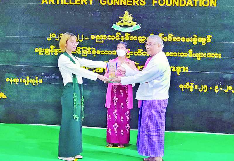 ၂၀၂၁-၂၀၂၂ ပညာသင်နှစ် တက္ကသိုလ်ဝင် စာမေးပွဲတွင် ထူးချွန်စွာ အောင်မြင်ခဲ့သည့် လေကြောင်းရန် ကာကွယ်ရေးတပ်ဖွဲ့၊ အမြောက်တပ်ဖွဲ့နှင့် ဒုံးတပ်ဖွဲ့တို့၌ တာဝန်ထမ်းဆောင်လျက်ရှိသူများ၏ သား သမီးများ၊ အငြိမ်းစားတပ်ဖွဲ့ဝင်များ၏ သားသမီးများ၊ စုစုပေါင်း ၉၈ ဦးတို့ကို Artillery Gunners Foun- dation က စက်တင်ဘာ ၂၅ ရက်တွင် နယ်မြေခံ အမြောက်တပ်ရင်း၌ ပညာရည်ချွန်ဆုပေးအပ်ပွဲ ကျင်းပသည်။