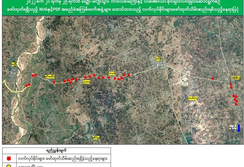 NUG နှင့် PDF အမည်ခံအကြမ်းဖက်သမားများသည် အေးချမ်းစွာနေထိုင်လျက်ရှိသည့် ပြည်သူလူထုများနှင့် တရားဥပဒေစိုးမိုးရေးအတွက် ဆောင်ရွက်နေသည့် အုပ်ချုပ်ရေးတာဝန်ရှိသူများအား ထိခိုက်ဒဏ်ရာရရှိစေရန်နှင့် လမ်းပန်းဆက်သွယ်မှုများ လုံခြုံရေးချောမွေ့မှုမရှိစေရေး ရည်ရွယ်ချက်များဖြင့် အများပြည်သူအသုံးပြုသည့် လမ်းကြောင်းများတွင် မိုင်းထောင်ခြင်း၊ ပစ်ခတ်တိုက်ခိုက်ခြင်းများ အကြမ်းဖက်ဖောက်ခွဲရေး လုပ်ရပ်များ ပြုလုပ်လျက်ရှိသည်။