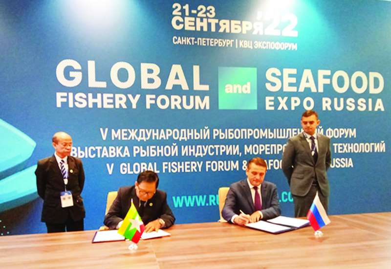 စိုက်ပျိုးရေး၊ မွေးမြူရေးနှင့်ဆည်မြောင်းဝန်ကြီးဌာန ဒုတိယဝန်ကြီး ဒေါက်တာအောင်ကြီး ဦးဆောင်သည့် မြန်မာကိုယ်စားလှယ်အဖွဲ့သည် ရုရှားနိုင်ငံဖယ်ဒရယ် ငါးလုပ်ငန်းအေဂျင်စီ၏ အကြီးအကဲ Mr. Ilya Shestakov ၏ ဖိတ်ကြားချက်အရ စိန့်ပီတာစဘတ်မြို့ St. Petersburg Exhibition and Convention Center ၌ ကျင်းပလျက်ရှိသည့် (၅) ကြိမ်မြောက် အပြည်ပြည်ဆိုင်ရာ ငါးလုပ်ငန်းဖိုရမ်နှင့် ဆက်စပ်လုပ်ငန်းများဆိုင်ရာ ရေလုပ်ငန်း ကုန်စည်ပြပွဲသို့ တက်ရောက်လျက်ရှိကြောင်း သိရသည်။