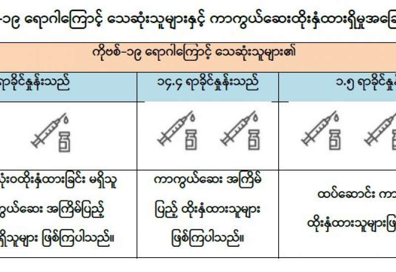 ကျန်းမာရေးဝန်ကြီးဌာနအနေဖြင့် နိုင်ငံအတွင်း ကူးစက်ဖြစ်ပွားနေသော COVID-19 ရောဂါ ကာကွယ်၊ ကုသ၊ ထိန်းချုပ်ရေးလုပ်ငန်းများကို အရှိန်အဟုန်မပြတ် ဆောင်ရွက်လျက် ရှိပါသည်။