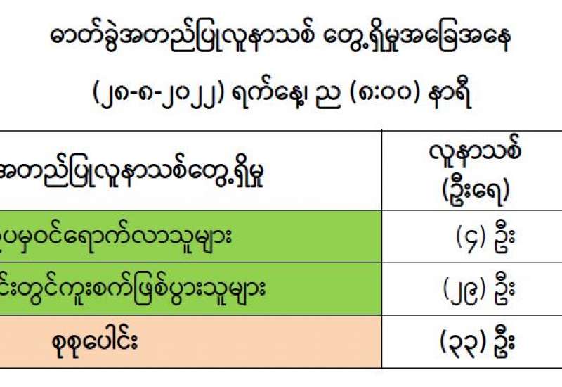 ကျန်းမာရေးဝန်ကြီးဌာနအနေဖြင့် နိုင်ငံအတွင်းကူးစက်ဖြစ်ပွားနေသော COVID-19 ရောဂါ ကာကွယ်၊ ကုသ၊ ထိန်းချုပ်ရေးလုပ်ငန်းများကို အရှိန်အဟုန်မပြတ် ဆောင်ရွက်လျက်ရှိရာ ရောဂါထိန်းချုပ်ရေးလုပ်ငန်းများ အောင်မြင်နိုင်ရေးအတွက် ပြည်သူလူထုအနေဖြင့် ကျန်းမာရေးဝန်ကြီးဌာနမှ ထုတ်ပြန်ထားသော COVID-19 ရောဂါကာကွယ်ထိန်းချုပ်ရေးဆိုင်ရာ စည်းကမ်းများကို စနစ်တကျ လိုက်နာဆောင်ရွက်ရန်လိုအပ်ပြီး COVID-19 ကာကွယ်ဆေးထိုးနှံမှုခံယူခြင်းအား အထူးဂရုပြု ပူးပေါင်းဆောင်ရွက်ကြရန် လိုအပ်ပါသည်။