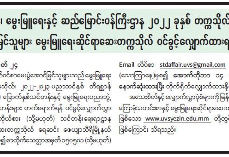 ၁။ တက္ကသိုလ်ဝင်စာမေးပွဲ ကျရှုံးသူများနှင့် အကြောင်းအမျိုးမျိုးကြောင့် ဝင်ရောက်ဖြေဆိုခြင်းမရှိသော ကျောင်းသား၊ ကျောင်းသူများအတွက် စနစ်ဟောင်း၊ သင်ရိုးဟောင်း တက္ကသိုလ်ဝင်စာမေးပွဲကို နောက်ဆုံးအကြိမ်အဖြစ် ၂၀၂၃ ခုနှစ်တွင် ကျင်းပသွားမည်ဖြစ်ပါသည်။