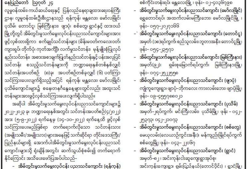 ကျန်းမာရေးဝန်ကြီးဌာနအနေဖြင့် နိုင်ငံအတွင်း ကူးစက်ဖြစ်ပွားနေသော COVID-19 ရောဂါ ကာကွယ်၊ ကုသ၊ ထိန်းချုပ်ရေးလုပ်ငန်းများကို အရှိန်အဟုန်မပြတ် ဆောင်ရွက်လျက်ရှိရာ ရောဂါ ထိန်းချုပ်ရေးလုပ်ငန်းများ အောင်မြင်နိုင်ရေးအတွက် ပြည်သူလူထုအနေဖြင့် ကျန်းမာရေးဝန်ကြီးဌာနမှ ထုတ်ပြန်ထားသော COVID-19 ရောဂါကာကွယ်ထိန်းချုပ်ရေးဆိုင်ရာ စည်းကမ်းများကို စနစ်တကျ လိုက်နာဆောင်ရွက်ရန်လိုအပ်ပြီး COVID-19 ကာကွယ်ဆေးထိုးနှံမှုခံယူခြင်းအား အထူးဂရုပြု ပူးပေါင်းဆောင်ရွက်ကြရန် လိုအပ်ပါသည်။