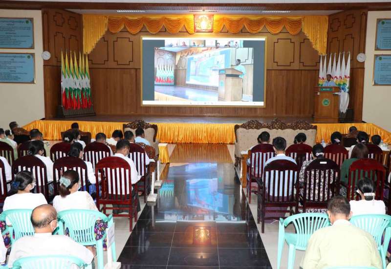 သမဝါယမနှင့် ကျေးလက်ဖွံ့ဖြိုးရေးဝန်ကြီးဌာန၏ နိုင်ငံတော်စီမံအုပ်ချုပ်ရေးကောင်စီဥက္ကဋ္ဌ၊ နိုင်ငံတော်ဝန်ကြီးချုပ် လမ်းညွှန်မှာကြားချက်များအား ထပ်ဆင့်ရှင်းလင်းခြင်းကို ယနေ့နံနက်ပိုင်းက အဆိုပါရုံး၊ စုပေါင်းအစည်းအဝေးခန်းမ၌ ကျင်းပရာ သမဝါယမနှင့် ကျေးလက်ဖွံ့ဖြိုးရေးဝန်ကြီးဌာန၊ ပြည်ထောင်စုဝန်ကြီး ဦးလှမိုး၊ ဒုတိယဝန်ကြီး ဦးမြင့်စိုး၊ အမြဲတမ်းအတွင်းဝန်၊ ညွှန်ကြားရေးမှူးချုပ်များ၊ ဒုတိယညွှန်ကြားရေးမှူးချုပ်များနှင့် ဝန်ထမ်းများ တက်ရောက်ကြသည်။