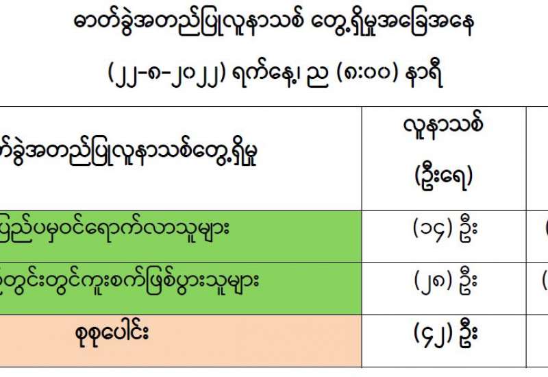 COVID-19 ရောဂါစောင့်ကြပ်ကြည့်ရှုမှုနှင့်ပတ်သက်၍ သတင်းထုတ်ပြန်ခြင်း (၂၂-၈-၂၀၂၂) ရက်နေ့၊ ည (၈:၀၀) နာရီ
