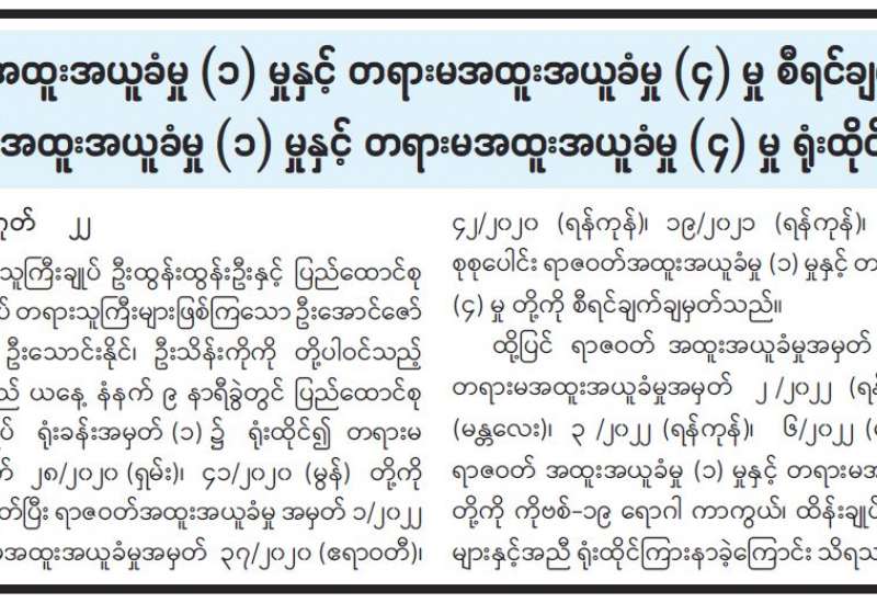 နိုင်ငံတော်စီမံအုပ်ချုပ်ရေးကောင်စီ၊ သတင်းထုတ်ပြန်ရေးအဖွဲ့၏ (၁၉) ကြိမ်မြောက် သတင်းစာရှင်းလင်းပွဲကို ဩဂုတ် ၁၇ ရက် မွန်းလွဲပိုင်းတွင် ပြန်ကြားရေးဝန်ကြီးဌာန၌ ကျင်းပရာ နိုင်ငံတော်စီမံအုပ်ချုပ်ရေးကောင်စီ၊ သတင်းထုတ်ပြန်ရေးအဖွဲ့ခေါင်းဆောင် ဗိုလ်ချုပ်ဇော်မင်းထွန်း၊ ပြည်ထောင်စုရွေးကောက်ပွဲကော်မရှင် အဖွဲ့ဝင်ဦးခင်မောင်ဦး၊ ဌာနဆိုင်ရာများမှ ပြောရေးဆိုခွင့်ရှိသူများနှင့် ဌာနဆိုင်ရာသတင်းထုတ်ပြန်ရေးအဖွဲ့ ကိုယ်စားလှယ်များက သတင်းမီဒီယာများ၏ သိရှိလိုသည့် မေးမြန်းမှုများကို ပြန်လည်ဖြေကြားသည်။