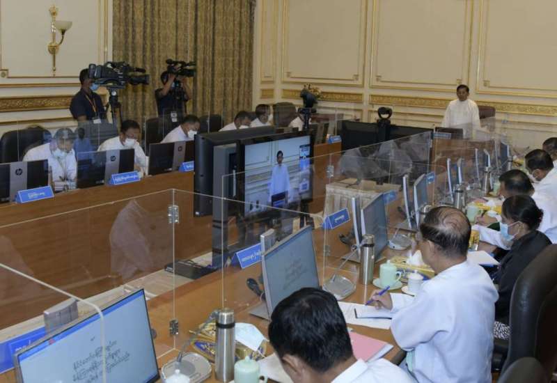 ပြည်ထောင်စုအစိုးရအဖွဲ့ အစည်းအဝေး အမှတ်စဉ်(၆/၂၀၂၂)ကို ယနေ့မွန်းလွဲပိုင်းတွင် နေပြည်တော်ရှိ နိုင်ငံတော်စီမံအုပ်ချုပ်ရေးကောင်စီဥက္ကဋ္ဌရုံး အစည်းအဝေးခန်းမ၌ ကျင်းပရာ နိုင်ငံတော်စီမံအုပ်ချုပ်ရေးကောင်စီဥက္ကဋ္ဌ နိုင်ငံတော်ဝန်ကြီးချုပ် ဗိုလ်ချုပ်မှူးကြီး မင်းအောင်လှိုင် တက်ရောက်အမှာစကားပြောကြားသည်။