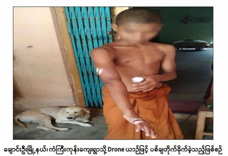 စစ်ကိုင်းတိုင်းဒေသကြီး၊ ချောင်းဦးမြို့နယ်၊ ကံကြီးကုန်းကျေးရွာရှိ ဘုန်းတော်ကြီး ကျောင်းဝင်းအတွင်းသို့ PDF အမည်ခံအကြမ်းဖက်အဖွဲ့က Drone ယာဉ်ဖြင့် ပစ်ခတ် တိုက်ခိုက်ခဲ့သဖြင့် ဘုန်းတော်ကြီးကျောင်းတွင် စာသင်ကြားလျက်ရှိသည့် ကျောင်းသား ၃ ဦးနှင့် ကိုရင် ၁ ပါးတို့တွင် မိုင်းစထိမှန်ဒဏ်ရာများ ရရှိခဲ့ကြောင်း သိရသည်။