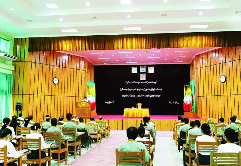 ပြည်ထောင်စု ရွေးကောက်ပွဲကော်မရှင်နှင့် ကော်မရှင်အဖွဲ့ခွဲရုံးအဆင့်ဆင့်တို့တွင် တာဝန်ထမ်းဆောင်မည့် ဦးစီးအရာရှိများ လုပ်ငန်းခွင်အကြို စွမ်းရည်မြှင့် သင်တန်းအမှတ်စဉ် (၄ / ၂၀၂၂ ) သင်တန်း ဆင်းပွဲကို ယနေ့မွန်းလွဲ ၃ နာရီတွင် စစ်ကြောရေးနှင့် တည်းခိုရေးတပ် (ရွာတော်) ဆင်ဖြူရှင်ခန်းမ၌ ကျင်းပသည်။