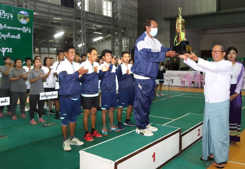 စိုက်ပျိုးရေး၊ မွေးမြူရေးနှင့် ဆည်မြောင်းဝန်ကြီးဌာန ပြည်ထောင်စုဝန်ကြီးဖလား ဌာနပေါင်းစုံ ကြက်တောင်ရိုက်အားကစားပြိုင်ပွဲ နောက်ဆုံးဗိုလ်လုပွဲနှင့် ဆုချီးမြှင့်ပွဲ အခမ်းအနားကို ယနေ့ ညနေပိုင်းက ပျဉ်းမနား ပေါင်းလောင်းအားကစားခန်းမ၌ ကျင်းပသည်။