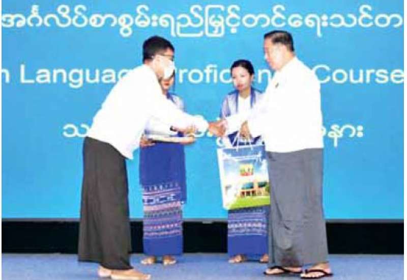 တိုင်းရင်းသားလူမျိုးများရေးရာဝန်ကြီးဌာန အင်္ဂလိပ်စာစွမ်းရည်မြှင့်တင်ရေး သင်တန်းအမှတ်စဉ်(၁) သင်တန်းဆင်းပွဲအခမ်းအနားကို ယနေ့မွန်းလွဲ ၂ နာရီတွင် တိုင်းရင်းသားလူမျိုးများရေးရာဝန်ကြီးဌာန အစည်းအဝေးခန်းမ၌ ကျင်းပရာ ပြည်ထောင်စုဝန်ကြီး ဦးစောထွန်းအောင်မြင့်၊ အမြဲတမ်းအတွင်းဝန်၊ ညွှန်ကြားရေးမှူးချုပ်များ၊ အရာထမ်း၊ အမှုထမ်းများ၊ သင်တန်းနည်းပြနှင့် သင်တန်းသားသင်တန်းသူများ တက်ရောက်ကြသည်။