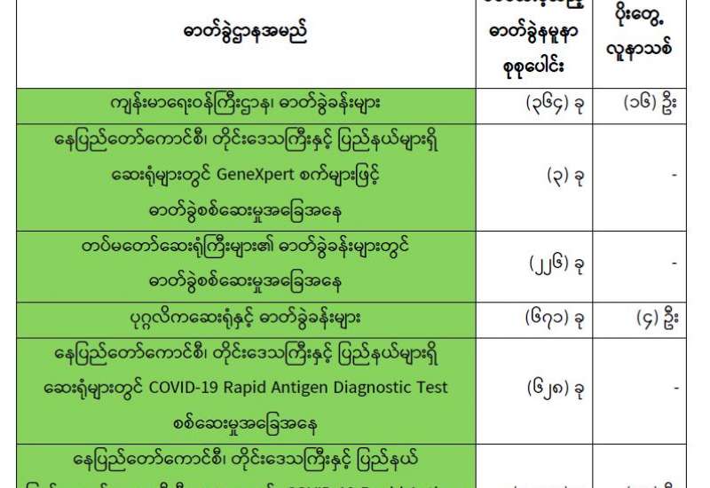 ကျန်းမာရေးဝန်ကြီးဌာနအနေဖြင့် နိုင်ငံအတွင်း ကူးစက်ဖြစ်ပွားနေသော COVID-19 ရောဂါ ကာကွယ်၊ ကုသ၊ ထိန်းချုပ်ရေးလုပ်ငန်းများကို အရှိန်အဟုန်မပြတ် ဆောင်ရွက်လျက်ရှိပါသည်။