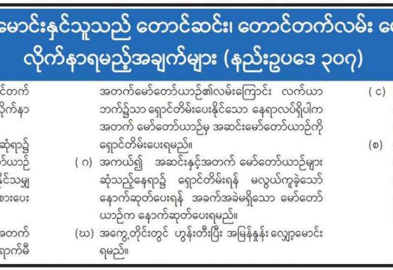 မော်တော်ယာဉ်မောင်းနှင်သူသည် တောင်ဆင်း၊ တောင်တက်လမ်း မောင်းနှင်ရာတွင် လိုက်နာရမည့်အချက်များ (နည်းဥပဒေ ၃၀၇)