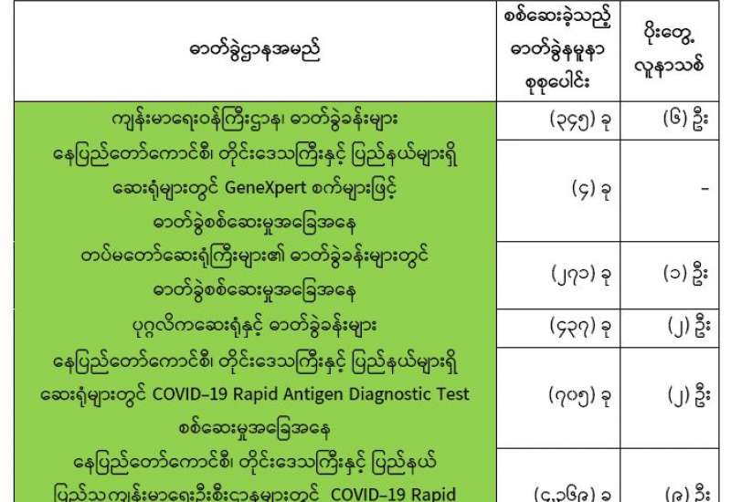ကျန်းမာရေးဝန်ကြီးဌာနအနေဖြင့် နိုင်ငံအတွင်း ကူးစက်ဖြစ်ပွားနေသော COVID-19 ရောဂါ ကာကွယ်၊ ကုသ၊ ထိန်းချုပ်ရေးလုပ်ငန်းများကို အရှိန်အဟုန်မပြတ် ဆောင်ရွက်လျက်ရှိပါသည်။