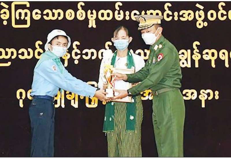 ရန်ကုန်တိုင်းဒေသကြီး စစ်မှုထမ်းဟောင်းကြီးကြပ်ရေးအဖွဲ့မှ ကြီးမှူးကျင်းပသော ၂၀၁၉-၂၀၂၀ ပညာသင်နှစ်နှင့် ၂၀၂၁-၂၀၂၂ ခုနှစ် ပညာသင်နှစ် တက္ကသိုလ်ဝင်စာမေးပွဲများတွင် ထူးချွန်စွာအောင်မြင်ခဲ့ကြသော ကျောင်းသားကျောင်းသူများအား ဂုဏ်ပြုချီးမြှင့်ခြင်းကို ယနေ့နံနက်ပိုင်းတွင် ရန်ကုန်တိုင်းစစ်ဌာနချုပ် အနော်ရထာခန်းမ၌ ပြုလုပ်ရာ တိုင်းမှူးဗိုလ်ချုပ် ညွန့်ဝင်းဆွေနှင့် တာဝန်ရှိသူများ၊ စစ်မှုထမ်းဟောင်းအဖွဲ့ဝင်များ၊ ဆုရကျောင်းသား၊ကျောင်းသူများ၊ ကျောင်းသားမိဘများနှင့် ဖိတ်ကြားထားသူများ တက်ရောက်ကြသည်။