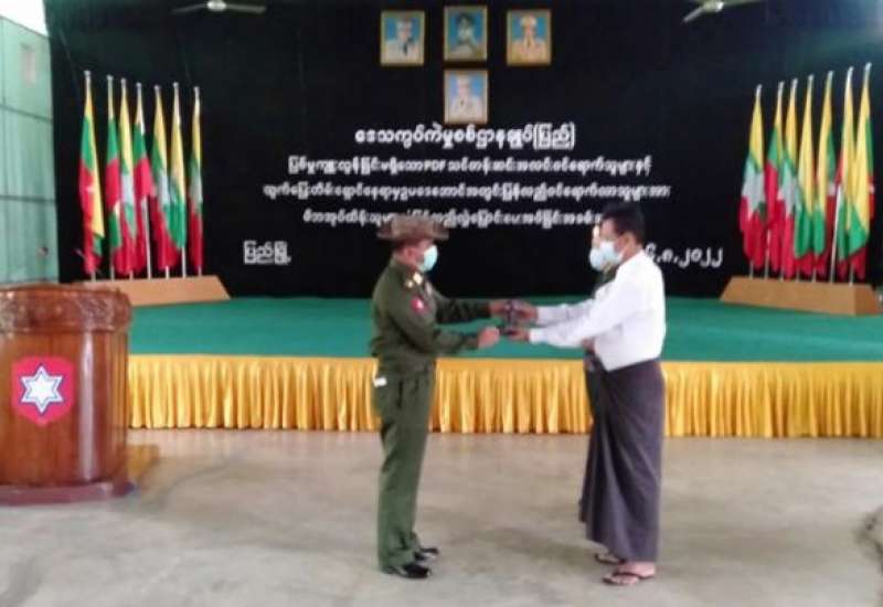 တိုင်းရင်းသားလက်နက်ကိုင်အဖွဲ့နယ်မြေအတွင်း သင်တန်းများတက်ရောက်ခဲ့ပြီး ပြစ်မှုကျူးလွန်ခြင်းမရှိခဲ့သည့် ဥပဒေဘောင်အတွင်း ဝင်ရောက်လာသော ပဲခူးတိုင်းဒေသကြီး၊ ပြည်မြို့မှ PDF အဖွဲ့ဝင်များအား ၎င်း၏မိဘအုပ်ထိန်းသူများထံသို့ ထပ်မံလွှဲပြောင်းပေးအပ်ခြင်းကို ယနေ့တွင် ပဲခူးတိုင်းဒေသကြီး၊ ပြည်မြို့ရှိ နယ်မြေခံ တပ်ရင်းခန်းမ၌ ပြုလုပ်ရာ တောင်ပိုင်းတိုင်းစစ်ဌာနချုပ်၊ ပြည်တည်နယ်မှ တာဝန်ရှိသူများ၊ ခရိုင်/မြို့နယ်စီမံအုပ်ချုပ်ရေးအဖွဲ့မှ တာဝန်ရှိသူများ၊ ဥပဒေဘောင်အတွင်း ဝင်ရောက်လာသူများနှင့် ၎င်းတို့၏ မိဘအုပ်ထိန်းသူများ တက်ရောက်ကြသည်။