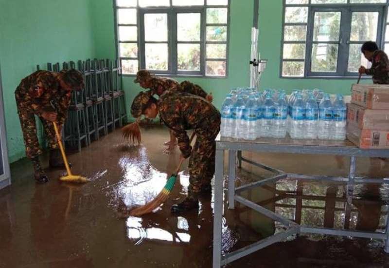 နေပြည်တော်ကောင်စီနယ်မြေအတွင်း ယနေ့နံနက်ပိုင်းတွင် မိုးသည်းထန်စွာ ရွာသွန်းမှုကြောင့် တောင်ကျရေများနှင့် နတ်တောင်ချောင်းရှိ ရေများပြည့်လျှံမှုကြောင့် ဥတ္တရသီရိမြို့နယ်၊ တက်ရှိန်းကျေးရွာနှင့် တပ်ကုန်းမြို့နယ်၊ လယ်ပြင်မကျေးရွာအတွင်းသို့ ရေဝင်ရောက်မှုများဖြစ်ပေါ်ခဲ့ကာ ကျေးရွာများရှိ ဘုန်းတော်ကြီးကျောင်း မုခ်ဦးနှင့် အုတ်တံတိုင်းများ ပြိုကျပျက်စီးခဲ့ပြီး လမ်းရေတိုက်စားမှုများ ဖြစ်ပေါ်ခဲ့သည်။