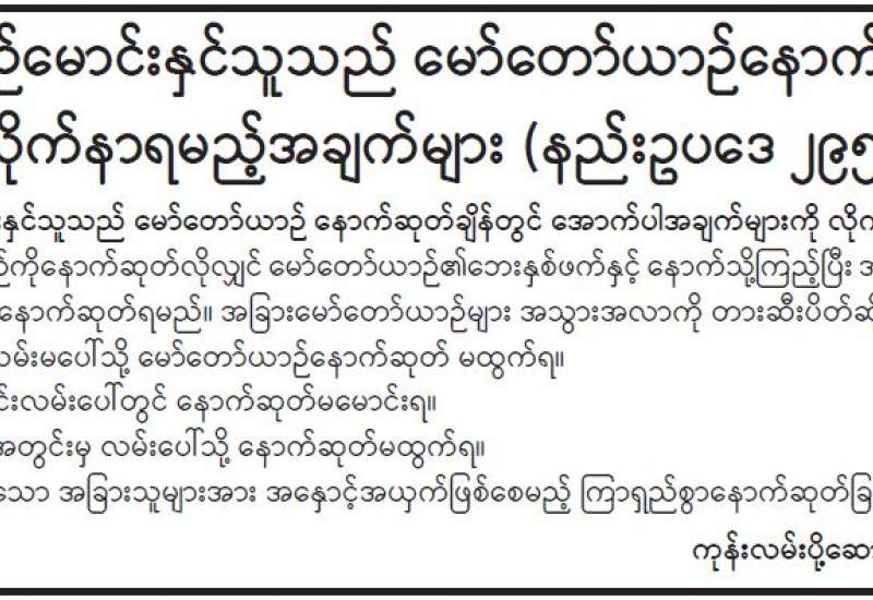မော်တော်ယာဉ်မောင်းနှင်သူသည် မော်တော်ယာဉ်နောက်ဆုတ်ချိန်တွင် လိုက်နာရမည့် အချက်များ (နည်းဥပဒေ ၂၉၅)