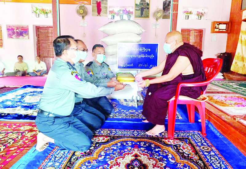 ပြည်ထဲရေးဝန်ကြီးဌာန တပ်ဖွဲ့ဝင်/ဝန်ထမ်း အရာထမ်း၊ အမှုထမ်း မိသားစုများက မြို့နယ်အသီးသီးရှိ ဘုန်းတော်ကြီးကျောင်းများသို့ ဆွမ်းဆန်တော်များ ဆက်ကပ်လှူဒါန်းခြင်းကို ဆောင်ရွက်လျက်ရှိသည်။