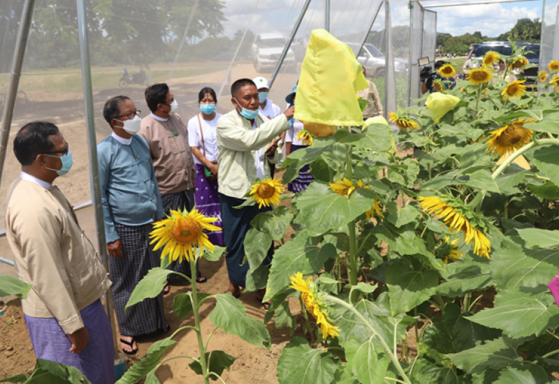 နေကြာသီးနှံ တိုးချဲ့စိုက်ပျိုးရေးအတွက် နေကြာမျိုးစေ့ မျိုးသန့်ပွားများရေး ဆောင်ရွက်မှု ရှင်းလင်းဆွေးနွေးပွဲကို ယနေ့ နံနက်ပိုင်းက နေပြည်တော် တပ်ကုန်းမြို့နယ်ရှိ စိုက်ပျိုးရေး သုတေသနခြံ၌ ကျင်းပသည်။