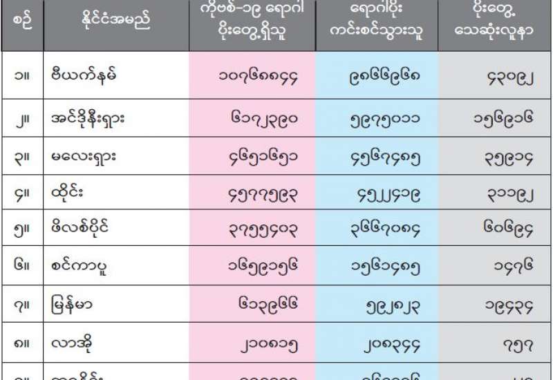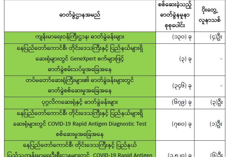 ကျန်းမာရေးဝန်ကြီးဌာနအနေဖြင့် နိုင်ငံအတွင်း ကူးစက်ဖြစ်ပွားနေသော COVID-19 ရောဂါ ကာကွယ်၊ ကုသ၊ ထိန်းချုပ်ရေးလုပ်ငန်းများကို အရှိန်အဟုန်မပြတ် ဆောင်ရွက်လျက်ရှိပါသည်။