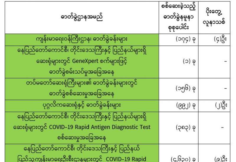 ကျန်းမာရေးဝန်ကြီးဌာနအနေဖြင့် နိုင်ငံအတွင်း ကူးစက်ဖြစ်ပွားနေသော COVID-19 ရောဂါ ကာကွယ်၊ ကုသ၊ ထိန်းချုပ်ရေးလုပ်ငန်းများကို အရှိန်အဟုန်မပြတ် ဆောင်ရွက်လျက်ရှိပါသည်။