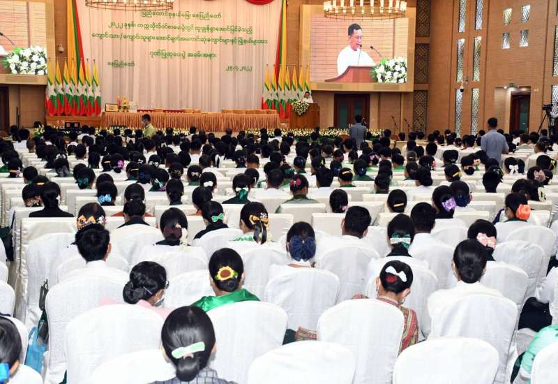 ပြည်ထောင်စုနယ်မြေ၊ နေပြည်တော် ၂၀၂၁-၂၀၂၂ ပညာသင်နှစ် တက္ကသိုလ်ဝင်တန်းစာမေးပွဲတွင် ထူးချွန်စွာအောင်မြင်ခဲ့ကြသည့် ကျောင်းသား/ကျောင်းသူများ၊ အောင်ချက်အကောင်းဆုံးကျောင်းများနှင့် မြို့နယ်များအား ဂုဏ်ပြုဆုပေးပွဲအခမ်းအနားကို ယနေ့နံနက် ၁၀ နာရီတွင် နေပြည်တော်ရှိ မြန်မာအပြည်ပြည်ဆိုင်ရာ ကွန်ဗင်းရှင်းဗဟိုဌာန (MICC-2) ၌ ကျင်းပသည်။