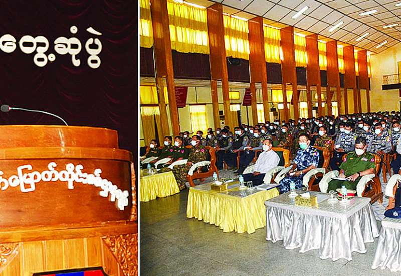နိုင်ငံတော်စီမံအုပ်ချုပ်ရေးကောင်စီ အစည်းအဝေး (၆/၂၀၂၂)ကို ယနေ့နံနက်ပိုင်းတွင် နေပြည်တော်ရှိ နိုင်ငံတော်စီမံအုပ်ချုပ်ရေး ကောင်စီဥက္ကဋ္ဌရုံး အစည်းအဝေးခန်းမ၌ ကျင်းပရာ နိုင်ငံတော်စီမံအုပ်ချုပ်ရေး ကောင်စီဥက္ကဋ္ဌ နိုင်ငံတော်ဝန်ကြီးချုပ် ဗိုလ်ချုပ်မှူးကြီး မင်းအောင်လှိုင် တက်ရောက်အမှာစကား ပြောကြားသည်။