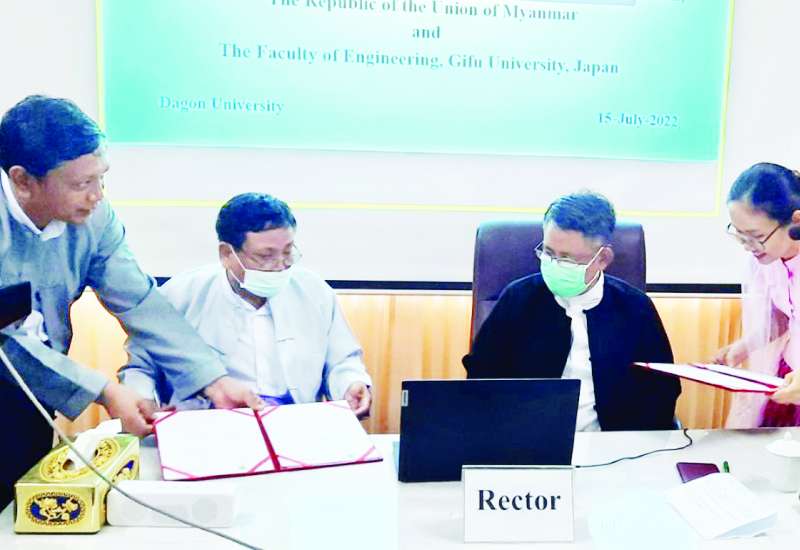 ဒဂုံတက္ကသိုလ် သိပ္ပံဌာနများနှင့် ဂျပန်နိုင်ငံ Gifu University အင်ဂျင်နီယာ မဟာဌာနကြီး အောက်ရှိ သိပ္ပံဌာနများအကြား MoU ရေးထိုးပွဲကို ဒဂုံတက္ကသိုလ် ပါမောက္ခချုပ်ရုံးခန်း အစည်းအဝေးခန်းမ၌ ဇူလိုင် ၁၅ ရက်က ကျင်းပသည်။