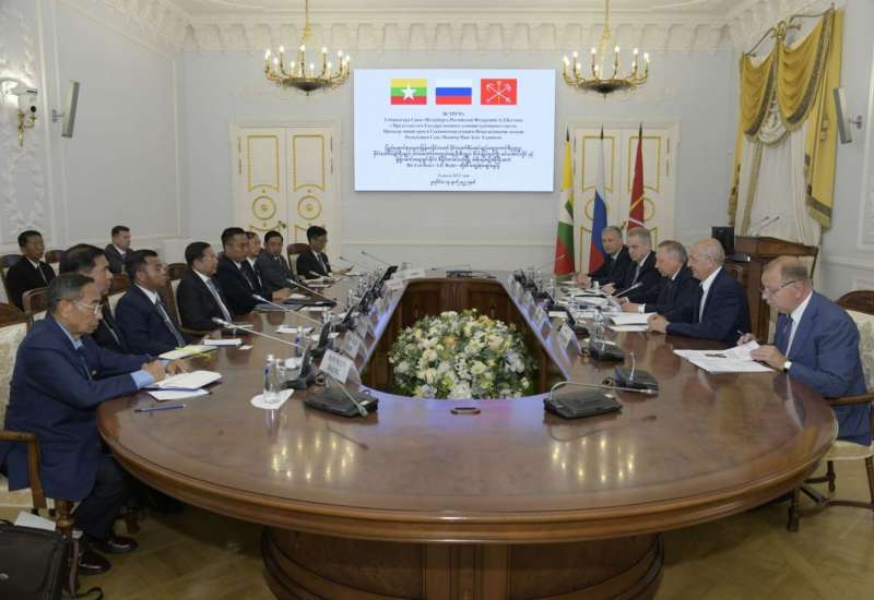 ရုရှားဖက်ဒရေးရှင်းနိုင်ငံသို့ ရောက်ရှိနေသည့် နိုင်ငံတော်စီမံအုပ်ချုပ်ရေး ကောင်စီဥက္ကဋ္ဌ၊ နိုင်ငံတော်ဝန်ကြီးချုပ် ဗိုလ်ချုပ်မှူးကြီး မင်းအောင်လှိုင်သည် ဇူလိုင် ၁၄ ရက် ဒေသစံတော်ချိန် နံနက်ပိုင်းတွင် စိန့်ပီတာစဘတ်မြို့အစိုးရအဖွဲ့ အကြီးအကဲ Mr.Alexander Beglov နှင့် အစိုးရအဖွဲ့ရုံး၌ တွေ့ဆုံဆွေးနွေးသည်။