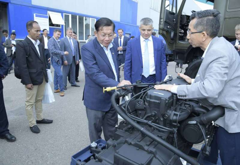 ရုရှားဖက်ဒရေးရှင်းနိုင်ငံသို့ ရောက်ရှိနေသည့် နိုင်ငံတော်စီမံအုပ်ချုပ်ရေး ကောင်စီဥက္ကဋ္ဌ၊ နိုင်ငံတော်ဝန်ကြီးချုပ် ဗိုလ်ချုပ်မှူးကြီး မင်းအောင်လှိုင် ဦးဆောင်သည့် ကိုယ်စားလှယ်အဖွဲ့သည် ရုရှားဖက်ဒရေးရှင်းနိုင်ငံဆိုင်ရာ မြန်မာနိုင်ငံ သံအမတ်ကြီး ဦးလွင်ဦး၊ စစ်သံမှူး ဗိုလ်မှူးချုပ် မိုးကျော်နှင့် တာဝန်ရှိသူများ လိုက်ပါ၍ ဇူလိုင် ၁၃ ရက်တွင် Republic of the Tatarsan၊ ကာဇန်မြို့ရှိ Kazan Aircraft Production Association နှင့် HIMGRAD Industrial Complex တို့သို့ သွားရောက်လေ့လာ ကြည့်ရှုသည်။