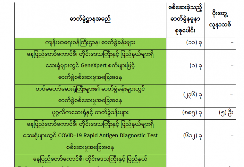 ကျန်းမာရေးဝန်ကြီးဌာနအနေဖြင့် နိုင်ငံအတွင်း ကူးစက်ဖြစ်ပွားနေသော COVID-19 ရောဂါ ကာကွယ်၊ ကုသ၊ ထိန်းချုပ်ရေးလုပ်ငန်းများကို အရှိန်အဟုန်မပြတ် ဆောင်ရွက်လျက် ရှိပါသည်။