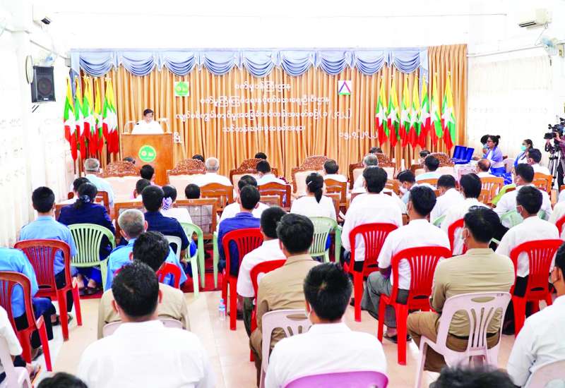 တိုင်းရင်းသားလက်နက်ကိုင် အဖွဲ့နယ်မြေအတွင်း သင်တန်းများ တက်ရောက်ခဲ့ပြီး ပြစ်မှုကျူးလွန်ခဲ့ခြင်းမရှိသည့် ဥပဒေဘောင်အတွင်း ဝင်ရောက်လာသော ရန်ကုန်တိုင်းဒေသကြီးအတွင်းမှ PDF အဖွဲ့ဝင်များအား မိဘအုပ်ထိန်းသူများထံသို့ လွဲပြောင်းပေးအပ်ခြင်းကို ယနေ့ နံနက်ပိုင်းတွင် ရန်ကုန်တိုင်းဒေသကြီး အစိုးရအဖွဲ့ရုံး၊ မင်္ဂလာခန်းမ၌ ပြုလုပ်သည်။