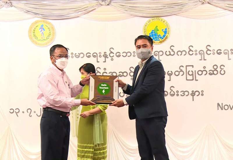 ဟိုတယ်နှင့် ခရီးသွားလာရေးဝန်ကြီးဌာန၊ ပြည်ထောင်စုဝန်ကြီး ဒေါက်တာဌေးအောင်သည် ဇူလိုင် ၁၃ ရက်၊ နံနက်ပိုင်းတွင် ရန်ကုန်မြို့ Hotel Yangon ရှိ ဝန်ထမ်းများ ကိုဗစ်-၁၉ ထပ်ဆောင်းကာကွယ်ဆေး ထိုးနှံခြင်းအခမ်းအနားသို့ တက်ရောက်၍ ဟိုတယ်ဝန်ထမ်း (၁၁၂)ဦး ကိုဗစ်-၁၉ ထပ်ဆောင်းကာကွယ်ဆေး ထိုးနှံပေးနေမှုများကို ရန်ကုန်တိုင်းဒေသကြီး အစိုးရအဖွဲ့ စီးပွားရေးရာဝန်ကြီး ဦးဇော်ဝင်း၊ မြန်မာနိုင်ငံ ခရီးသွားလုပ်ငန်းအဖွဲ့ချုပ်မှ တာဝန်ရှိသူများ၊ ဟိုတယ်ဆိုင်ရာ လုပ်ငန်းရှင်များအသင်း (ရန်ကုန်ဇုန်)မှ တာဝန်ရှိသူများနှင့်အတူ ကြည့်ရှုအားပေးသည်။