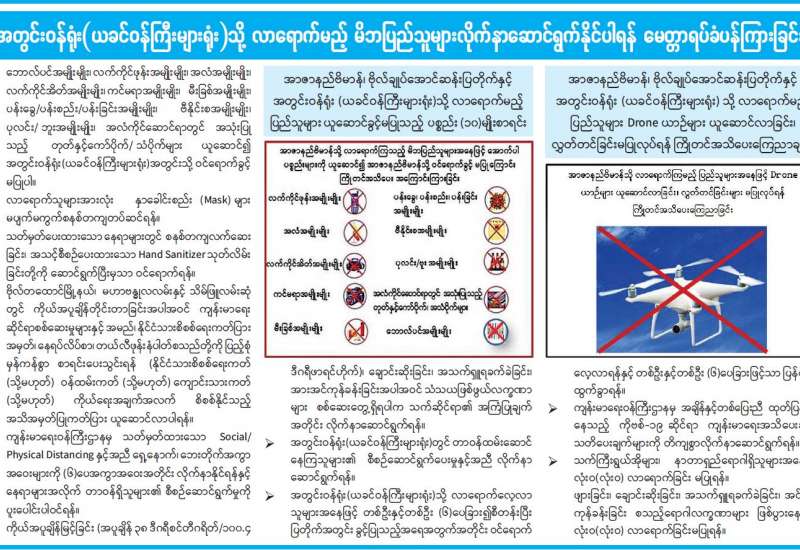 စီးပွားရေးနှင့်ကူးသန်းရောင်းဝယ်ရေးဝန်ကြီးဌာနအနေဖြင့် ကိုဗစ်-၁၉ ရောဂါ ကာကွယ်၊ ထိန်းချုပ်၊ ကုသရေးဆိုင်ရာပစ္စည်းများကို လေကြောင်း၊ ပင်လယ်ရေကြောင်းနှင့် နယ်စပ်ကုန်သွယ်ရေးစခန်းများမှ နှောင့်နှေးကြန့်ကြာမှုမရှိ တင်သွင်းနိုင်ရေးအတွက် အချိန်နှင့်တစ်ပြေးညီ စီစဉ်ဆောင်ရွက်ပေးလျက်ရှိရာ ယနေ့တွင် ချင်းရွှေဟော်ကုန်သွယ်ရေးစခန်းမှ ကုမ္ပဏီတစ်ခုနှာခေါင်းစည်းယာဉ်စီးရေ နှစ်စီးဖြင့် ၉ ဒသမ ၆၄ တန် တင်သွင်းခဲ့ကြောင်း သိရသည်။