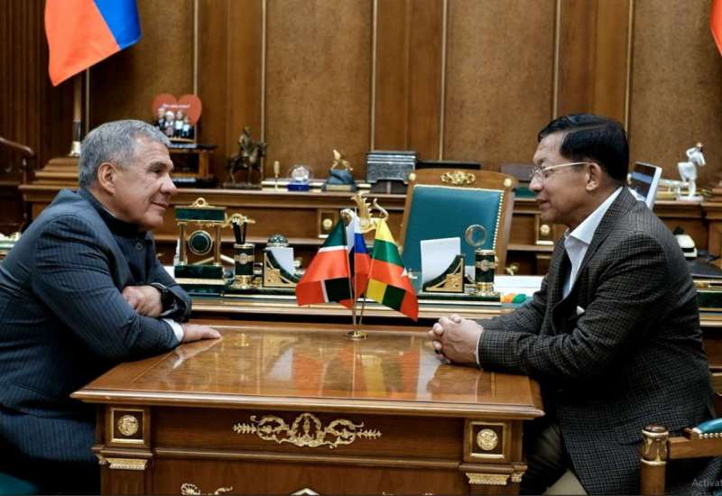 ရုရှားဖက်ဒရေးရှင်းနိုင်ငံသို့ရောက်ရှိနေသည့် နိုင်ငံတော်စီမံအုပ်ချုပ်ရေးကောင်စီဥက္ကဋ္ဌ၊ နိုင်ငံတော်ဝန်ကြီးချုပ် ဗိုလ်ချုပ်မှူးကြီးမင်းအောင်လှိုင် ဦးဆောင်သည့် ကိုယ်စားလှယ်အဖွဲ့သည် စစ်သံမှူးဗိုလ်မှူးချုပ်မိုးကျော်နှင့် တာဝန်ရှိသူများလိုက်ပါ၍ ယနေ့ဒေသစံတော်ချိန် ညနေပိုင်း တွင် Republic of the Tatarstan ၊ ကာဇန်မြို့၊ ကာဇန်လေဆိပ်သို့ ရောက်ရှိကြရာ Republic of the Tatarstan သမ္မတMr. Rustam Nurgaliyevich Minnikhanov နှင့် တာဝန်ရှိသူတို့က ရိုးရာဓလေ့ထုံးတမ်းစဉ်လာများနှင့်အညီ ခင်မင်ရင်းနှီးစွာ ကြိုဆိုနှုတ်ဆက်ကြသည်။