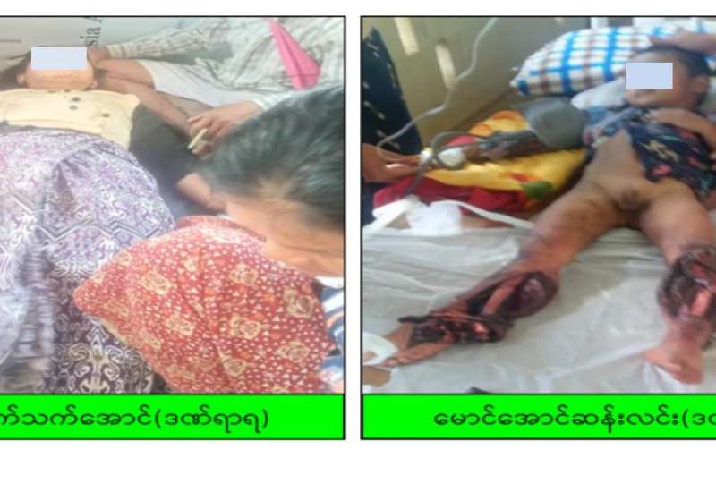 ပဲခူးတိုင်းဒေသကြီး၊ ကျောက်တံခါးမြို့နယ်၌ ဇူလိုင်လ ၉ ရက်နေ့က ဆေးကုသရန် သွားသည့် သားအမိ ၂ ဦး PDF အမည်ခံအကြမ်းဖက်သမားများ ထောင်ထားသည့် လက်လုပ်နင်းမိုင်း တစ်လုံးအား နင်းမိပေါက်ကွဲကာ ၄ နှစ်အရွယ်ကလေးငယ်တစ်ဦးနှင့် မိခင်ဖြစ်သူတို့ ထိခိုက်ဒဏ်ရာ ပြင်းထန်ရရှိခဲ့ကြောင်း သိရသည်။