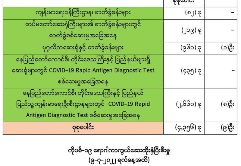 COVID-19 ရောဂါစောင့်ကြပ်ကြည့်ရှုမှုနှင့်ပတ်သက်၍ သတင်းထုတ်ပြန်ခြင်း (၁၀-၇-၂၀၂၂) ရက်နေ့၊ ည (၈:၀၀) နာရီ