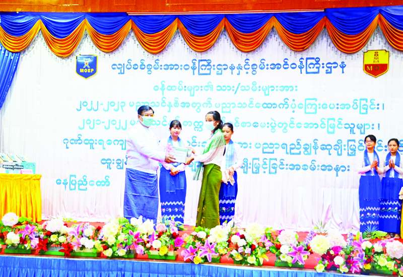 လျှပ်စစ်စွမ်းအားဝန်ကြီးဌာနနှင့် စွမ်းအင်ဝန်ကြီးဌာန ၂၀၂၂-၂၀၂၃ ပညာသင်နှစ်အတွက် ပညာသင်ထောက်ပံ့ကြေး ပေးအပ်ခြင်း၊ ၂၀၂၁-၂၀၂၂ ပညာသင်နှစ် တက္ကသိုလ်ဝင်စာမေးပွဲတွင် အောင်မြင်သူများ၊ ဂုဏ်ထူးရ ကျောင်းသား ကျောင်းသူများအား ပညာရည်ချွန်ဆု ချီးမြှင့်ခြင်းနှင့် ထူးချွန်ဆုရဝန်ထမ်းများအား ဆုချီးမြှင့်ခြင်း အခမ်းအနားကို ယနေ့ နံနက် ၉ နာရီတွင် လျှပ်စစ်စွမ်းအားဝန်ကြီးဌာန ရုံးအမှတ်(၂၇) ရတနာခန်းမ၌ ကျင်းပသည်။