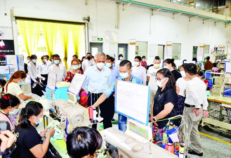 ရင်းနှီးမြှုပ်နှံမှုနှင့် နိုင်ငံခြားစီးပွားဆက်သွယ်ရေးဝန်ကြီးဌာန ပြည်ထောင်စုဝန်ကြီး ဦးအောင်နိုင်ဦးသည် ဇူလိုင် ၈ ရက် မွန်းလွဲပိုင်းက ပဲခူးတိုင်းဒေသကြီး ပဲခူးမြို့နယ်အတွင်းရှိ မြန်မာနိုင်ငံရင်းနှီးမြှုပ်နှံမှုကော်မရှင်၏ ခွင့်ပြုမိန့်ဖြင့် ဆောင်ရွက်လျက်ရှိသည့် နိုင်ငံခြားရင်းနှီးမြှုပ်နှံမှု လုပ်ငန်းဖြစ်သော Panko Bago Co.,Ltd. ၏ CMP စနစ်ဖြင့် အဝတ်အထည်အမျိုးမျိုး ထုတ်လုပ်ခြင်းလုပ်ငန်းသို့ သွားရောက်လေ့လာ ကြည့်ရှုသည်။