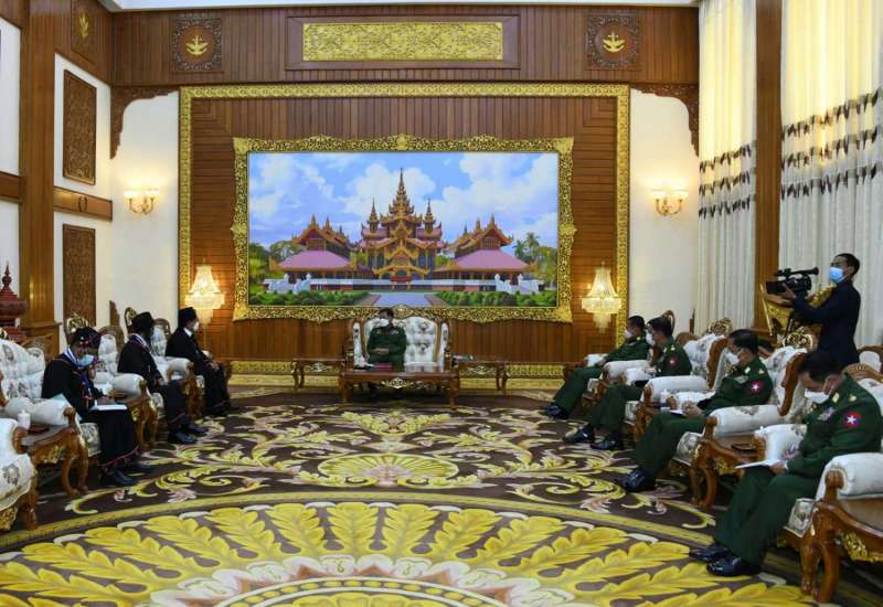 နိုင်ငံတော်စီမံအုပ်ချုပ်ရေးကောင်စီဥက္ကဋ္ဌ တပ်မတော်ကာကွယ်ရေးဦးစီးချုပ် ဗိုလ်ချုပ်မှူးကြီးမင်းအောင်လှိုင်သည် လားဟူဒီမိုကရက်တစ်အစည်းအရုံး(LDU)မှ အထွေထွေအတွင်းရေးမှူး ကျာဆော်လမွန် ဦးဆောင်သည့် ငြိမ်းချမ်းရေးကိုယ်စားလှယ်အဖွဲ့အား ယနေ့မွန်းလွဲပိုင်းတွင် နေပြည်တော်ရှိ ဘုရင့်နောင်ရိပ်သာ ဧည့်ခန်းမဆောင်၌ တွေ့ဆုံ၍ ငြိမ်းချမ်းရေးဆိုင်ရာကိစ္စရပ်များ ဆွေးနွေးသည်။