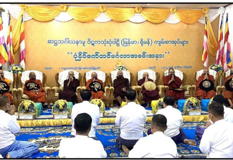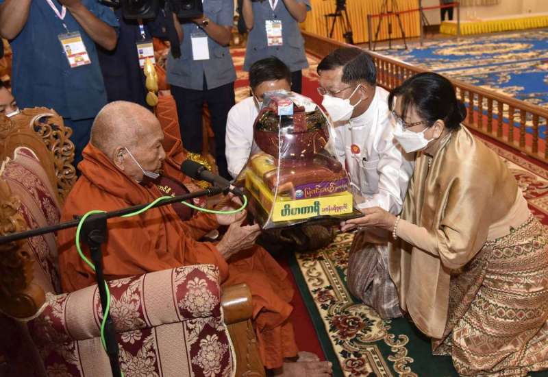 ပြည်ထောင်စုသမ္မတမြန်မာနိုင်ငံတော်၊ နိုင်ငံတော်စီမံအုပ်ချုပ်ရေးကောင်စီ၏ ၂၀၂၂ ခုနှစ်၊ ဝါဆိုသင်္ကန်းဆက်ကပ်လှူဒါန်းပွဲ မင်္ဂလာအခမ်းအနားကို ယနေ့နံနက်ပိုင်းတွင် နေပြည်တော်ကောင်စီနယ်မြေ၊ ဥပ္ပါတသန္တိစေတီတော်မြတ်ကြီးပရိဝုဏ်တော်အတွင်းရှိ သာသနာ့မဟာဗိမာန်တော်ကြီး၌ ကျင်းပပြုလုပ်ရာ နိုင်ငံတော်စီမံအုပ်ချုပ်ရေးကောင်စီဥက္ကဋ္ဌ နိုင်ငံတော်ဝန်ကြီးချုပ် ဗိုလ်ချုပ်မှူးကြီးမင်းအောင်လှိုင်နှင့် ဇနီးဒေါ်ကြူကြူလှ တို့တက်ရောက်ကြည်ညို၍ ဝါဆိုသင်္ကန်းနှင့် လှူဖွယ်ပစ္စည်းများ ဆက်ကပ်လှူဒါန်းသည်။