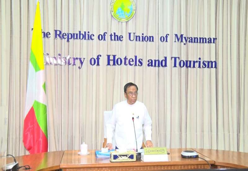 ဟိုတယ်နှင့် ခရီးသွားလာရေးဝန်ကြီးဌာန၊ ပြည်ထောင်စုဝန်ကြီး ဒေါက်တာဌေးအောင်သည် ယနေ့မွန်းလွဲပိုင်းတွင် ဝန်ကြီးဌာန၊ နီလာခန်းမ၌ ကျင်းပသော လုပ်ငန်းဗီဇာနှင့် ကမ္ဘာလှည့်ဗီဇာတို့ဖြင့် ခရီးသွားဧည့်သည်များ ပိုမိုလာရောက်ရေးနှင့် လိုအပ်သည်များ ကူညီဖြည့်ဆည်း ဆောင်ရွက်ပေးနိုင်ရေးအတွက် ညှိနှိုင်း အစည်းအဝေးသို့ တက်ရောက်သည်။